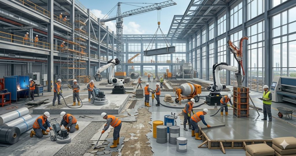 Nasze prace obejmują naprawy elementów nośnych, słupów, belek, kratownic, stropów oraz fundamentów hali. Stosujemy nowoczesne technologie wzmacniania konstrukcji, w tym nakładanie stali, iniekcje żywiczne, cięcie i spawanie elementów stalowych, a także naprawę i regenerację betonu w konstrukcjach żelbetowych.